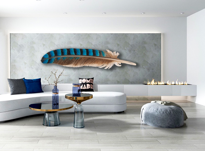 Plume de Geai 2. dimensions: 175x40x3cm Eichelhäher-Feder 2. Abmessungen: 175x40x3cm
