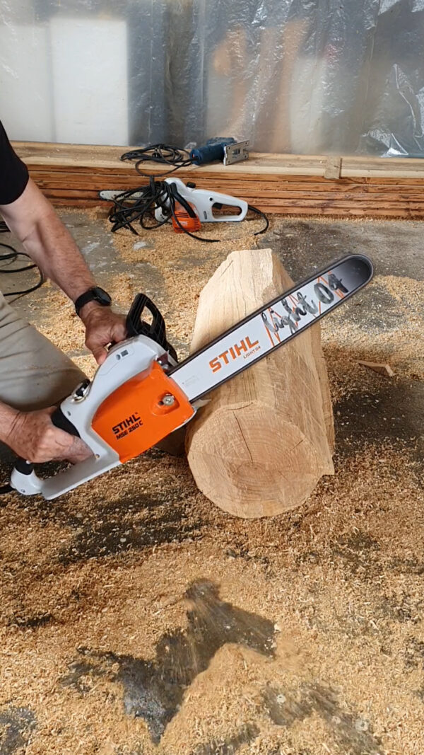 Mon outil de prédilection est la tronçonneuse, et je fais